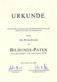 Die Bildungs-Patenschaften stellen das Premium-Förderinstrument der Akademie für Sozialethik und Öffentliche Kultur dar. Patenschaftsinhaber/innen erhalten eine von ask-Beirat Gerhart Baum und ask-Direktor Prof. Dr. Martin Booms gezeichnete Urkunde und nehmen auf Wunsch an einem jährlichen Patensymposion teil. Patenschaften können auch von Institutionen und Unternehmen übernommen werden. Die ask-Bildungspaten und -patinnen werden zudem Mitglied im Kreis der "Freunde & Förderer" der Akademie. Wir freuen uns auf neue und alte Förderinnen und Förderer!