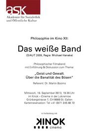 Die ask-Reihe "Philosophie im Kino" hat eine Reihe neuer Veranstaltungen zum Themenkomplex "Wirtschaft, Arbeit und Gesellschaft" gestartet. Der Auftakt erfolgte am 27. Mai im Kölner Odeon-Kino mit Hans Weingartners Film "Die fetten Jahre sind vorbei". Das Thema lautete: "Wohlstand oder Glück? Zur Bedeutung materieller Güter für das gute Leben."